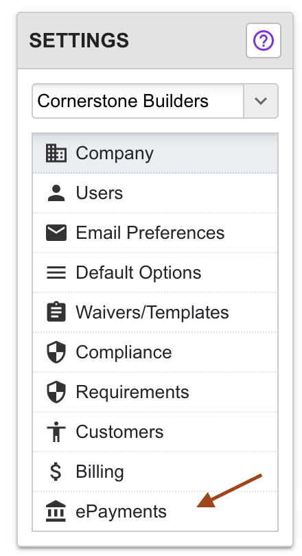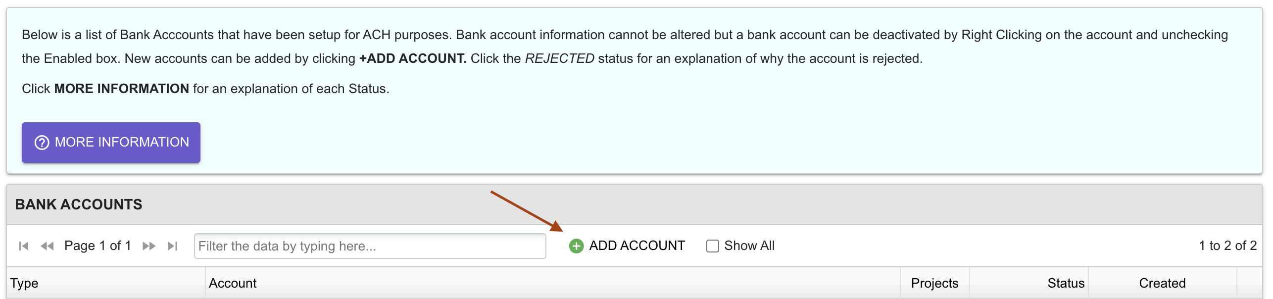 2. Click on ACH Settings